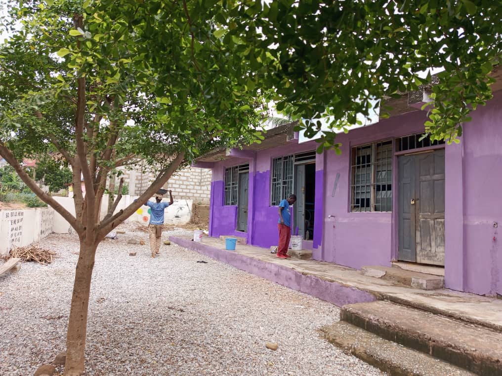 Während unsere Schüler ihre wohlverdienten Ferien genießen, nutzen wir die Gelegenheit, um unsere Schule in neuem Glanz erstrahlen zu lassen. In Ghana spielt der erste Eindruck eine große Rolle – deshalb bekommt unsere Außenfassade gerade einen frischen Anstrich in unseren bekannten Farben.